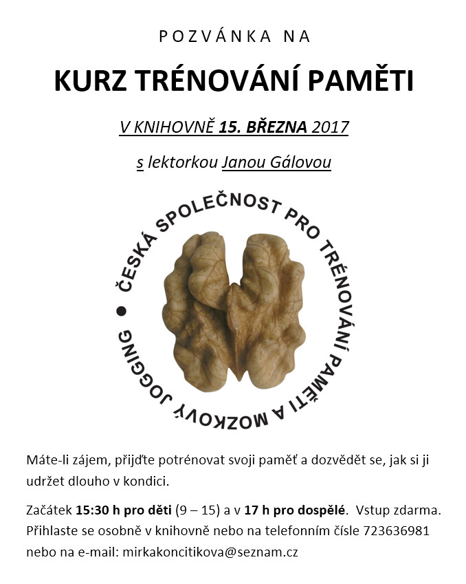 Máte-li zájem, přijďte potrénovat svoji paměť a dozvědět se, jak si ji udržet dlouho v kondici.