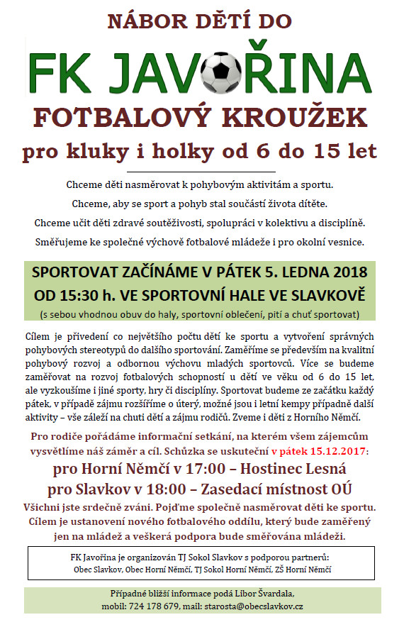 Nábor dětí do FK Javořina