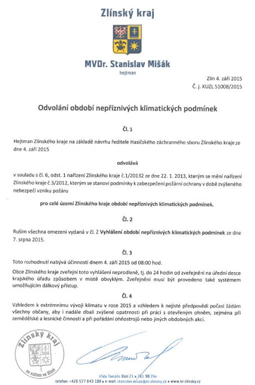 Odvolání období nepříznivých klimatických podmínek