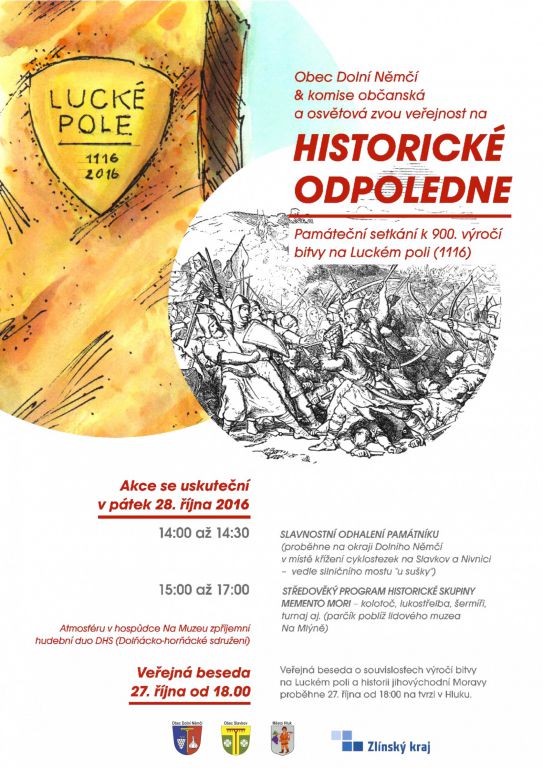 27.10. - 18:00 - veřejná beseda o souvislostech výročí bitvy na Luckém poli a historii jihovýchodní Moravy (na tvrzi v Hluku)