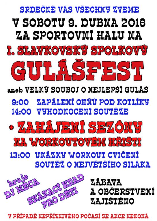 Pozvánka na I. SLAVKOVSKÝ SPOLKOVÝ GULÁŠFEST