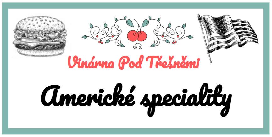 Srdečně Vás zveme na Americké speciality, které podáváme už tento pátek a sobotu od 10:30–21:00 hod. Těšit se můžete na hamburgery, hot dogy, křidýlka, lívance a další. Rezervace nutná na tomto čísle 777 577 322. Těšíme se na Vás. Vinárna Pod Třešněmi.